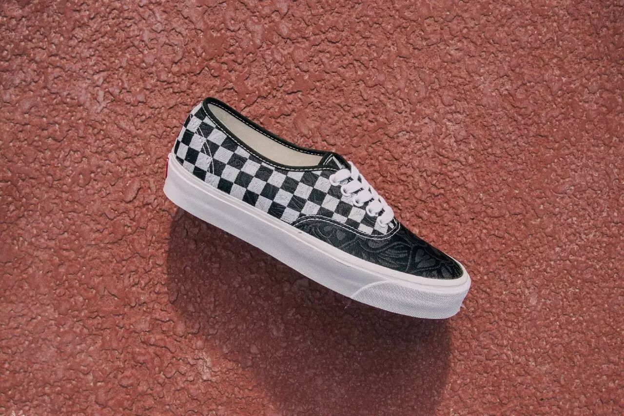 Authentic 鞋款推出黑白蓝三款,鞋头以提花工艺制作,后部呈现 Vans 标志性棋盘格图案,细看之下其中依然隐匿着提花图案。