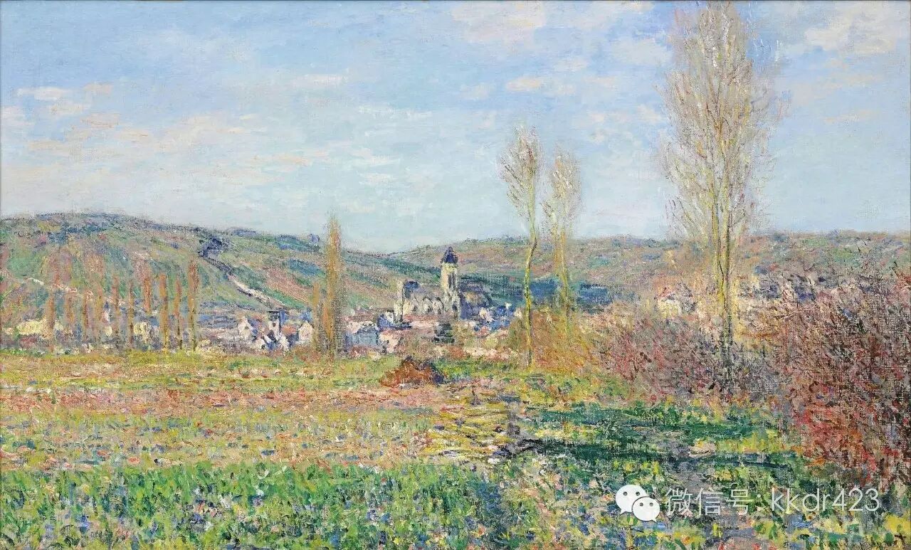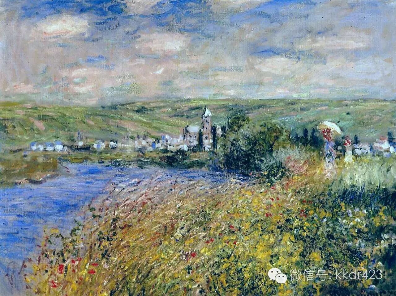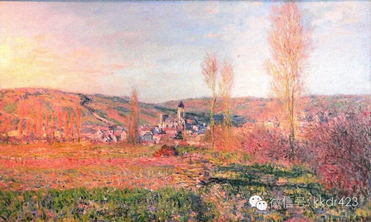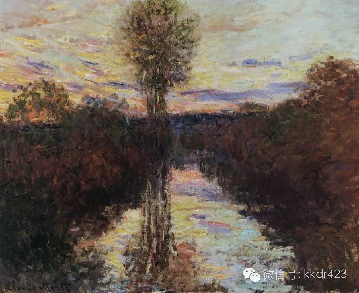 此后,莫奈就一直沉浸在丰富多变的光色之中了。为了专门研究光色的问题,莫奈常常对照同一景物写生,研究在不同的阳光,不同的天气情况下的各种色彩变化。