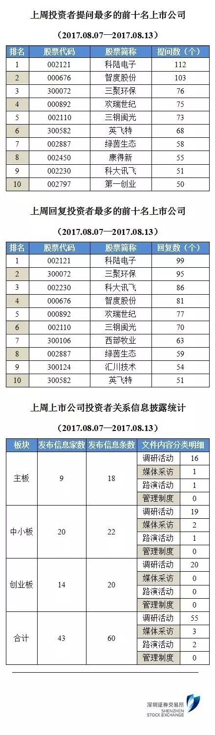 上周,我所互动易收到投资者日常问题共9441条,其中有效问题7246条,上市公司回复6801条(含本周对以往问题的回复);共有43家上市公司发布60条投资者关系活动记录文件。请查阅公众号,在“互动活动“一栏点击”互动易下载”安装。