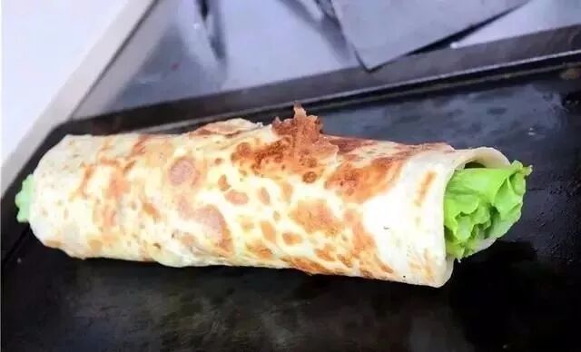 鸡蛋灌饼小摊可以算是小略最喜欢的地方之一了,老板把事先揉好的面团摊成饼,糊上蛋液,再加上料,包裹火腿肠、里脊等肉馅再卷起来就做好了,吃起来味道棒棒哒。