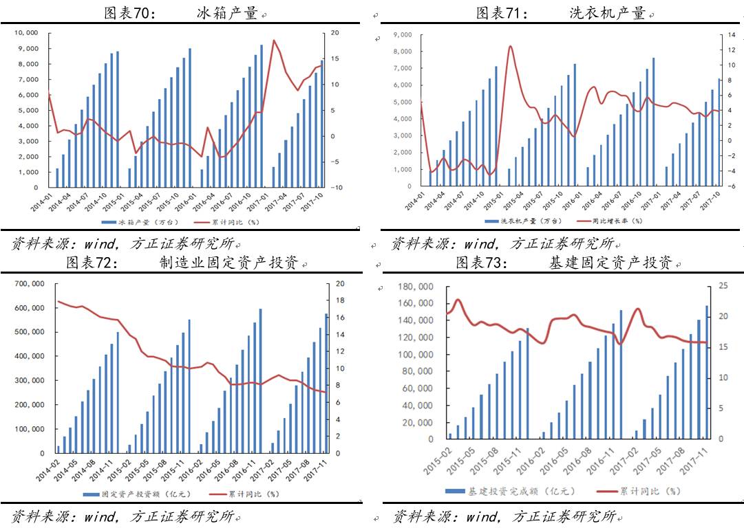17年3季度建筑行业GDP累积增速4.80%,增速比2季度下降0.50%。1-11月房地产开发投资累计完成额100387亿,同比名义增长7.50%。商品房销售面积14.6亿平米。1-11月累计汽车销量2584.49万台,同比增长3.59%。1-10月挖掘机产量18.2万台,同比增长率65.1%。