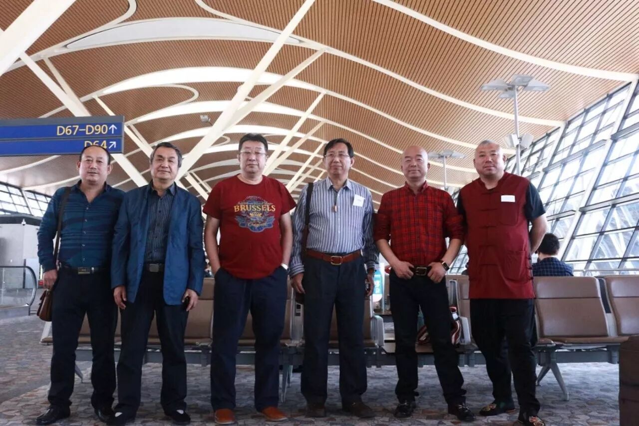 左起:汪鹏辉、张建华、张大光、孙维国、朱臣、龙野 在上海机场