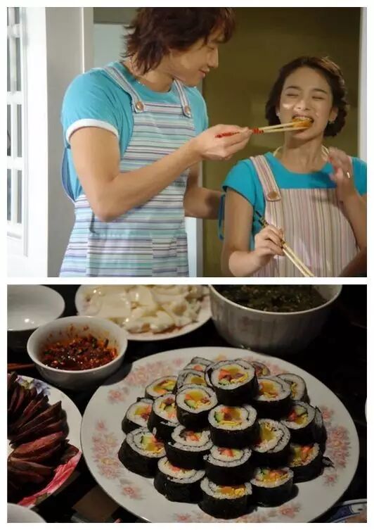 韩国寿司的种类多样,在韩国饮食文化中也扮演了多面的角色,可以做正餐,也可以做零食,从高档饭店到路边摊都可以见到,几乎每一部热播的韩剧中也都有寿司端上饭桌或给孩子作为便当的镜头。