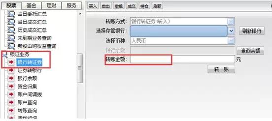 选择“更多交易”,点击“银证”,选择“银行转证券”