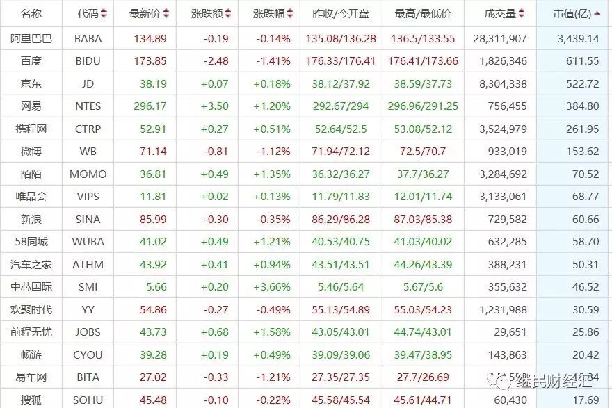 以下为本周五收盘时,在美上市主要中概科技股的股价情况: