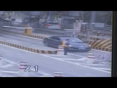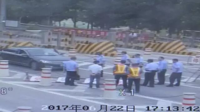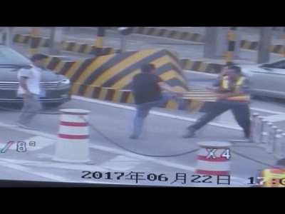 据了解:6月22日下午四点五十分左右,一辆黑色帕萨特轿车,行驶到如皋磨头收费站时,司机拒交10块钱过路费,随后倒车冲击关卡,遭到稽查员拦截,司机下车猛打稽查员,踢翻护栏砸在稽查员脚上,两名稽查员没有还手。