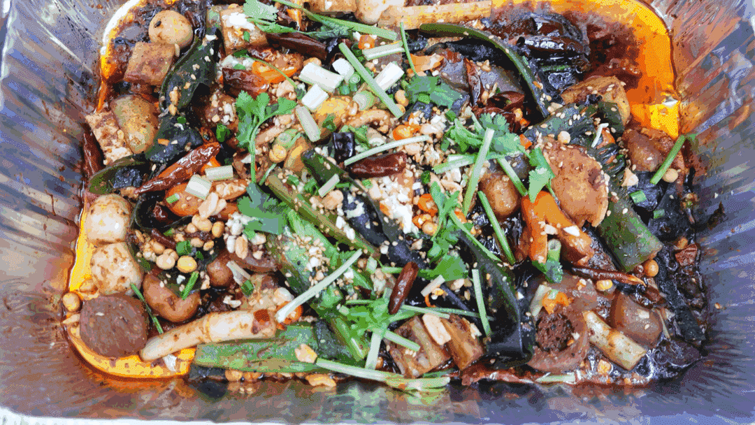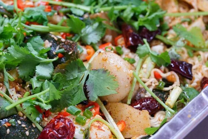 而且不是油乎乎的红油冒菜,这次是干拌的呀喂!下饭利器呀喂!几十种的原材料随便你选,最贵的菜才12!闭着眼睛拿都ok的~啥子鱿鱼、鹌鹑蛋、芝士小年糕、午餐肉、脆皮肠、方便面、土豆......统统都到我的炭火碗里来!