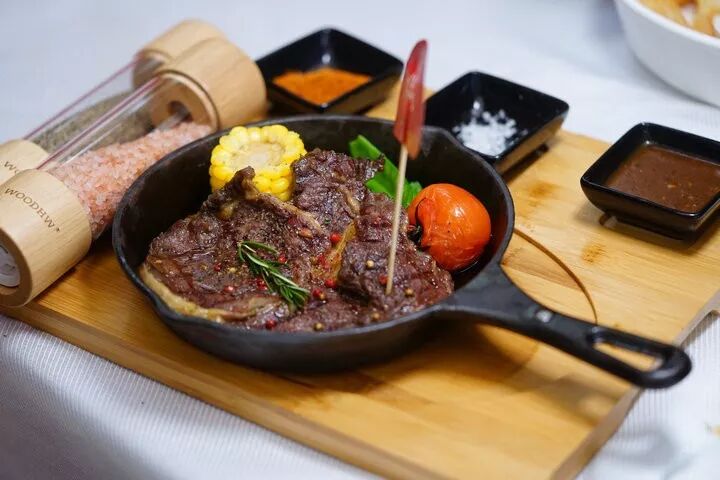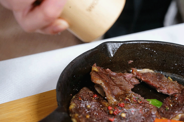 玫瑰海盐,胡椒粉,干海椒面,黑胡椒汁,老板都给你配齐了,想吃啥子蘸啥子,也可以自己配个怪味牛排试试~