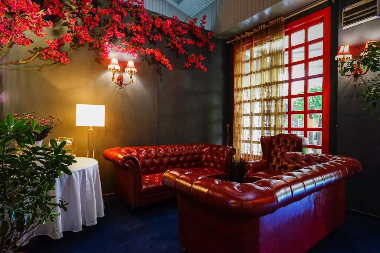 院内房里更是另一番新天地,各种鲜艳的大红大绿刺激着你的视觉,各种精美的灯具装饰,靠在舒服的皮沙发里,边上的落地大窗户撒下丝丝阳光,这暖冬的夏日舒服极了。