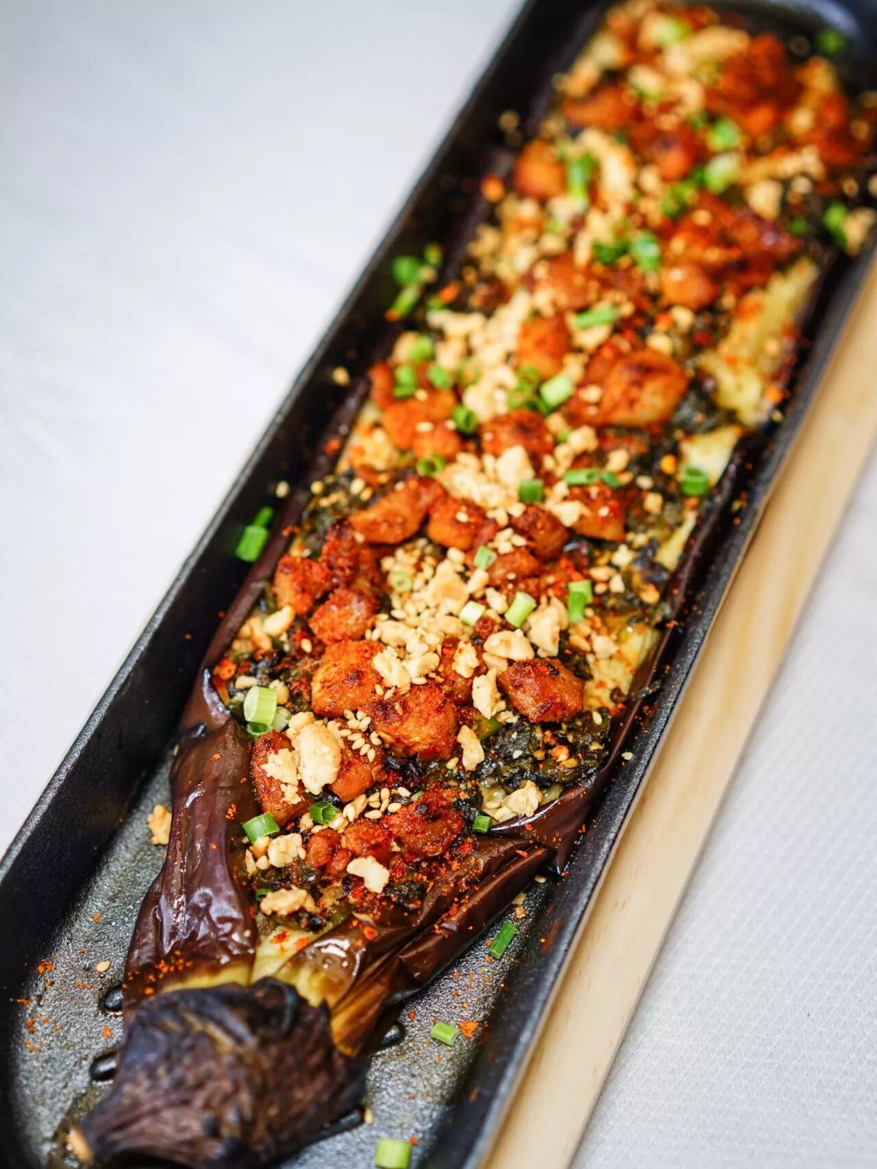 还有这条绝对和别人不一样的烤大茄,虽然只是一个配角,但是一端上来绝对是光芒万丈!我就问你有没有吃过放肉粒的烤大茄!还是这么大一颗的肉粒!