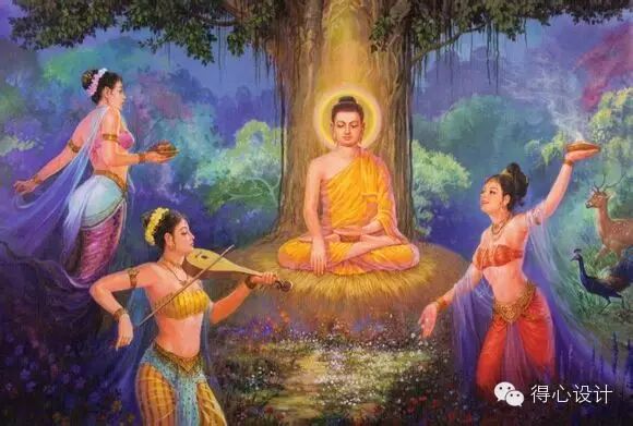 无视天魔王三个女儿的诱惑(EON注:据说当时这3位 他化自在天 的天女,变化出所有年龄段有可能对男性形成诱惑的女性形态,用尽所有的方式试图打动;天魔所在的 他化自在天 是欲界天最高等的一层,经典里有提到,和欲界天的天女相比,凡俗世界一国之中最美的女子都会显得像猕猴一样难看;后来有位老婆罗门叫 玛甘迪,想把他美丽的女儿嫁给时,就提到这件事,说即使是当时那样的天女我都不再动心,何况你的女儿(参见后图))
