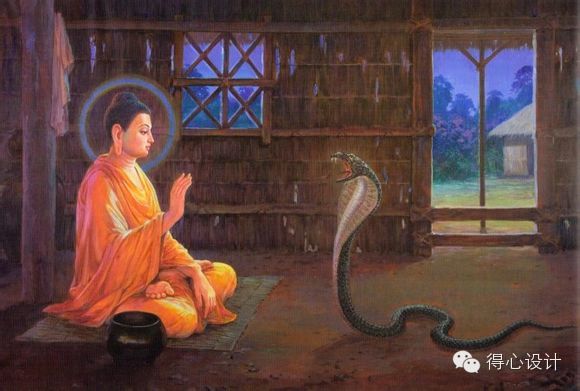 在优楼频螺迦叶的草堂中降服蛇王(EON注:英文原文可能有误,原文直译是‘优楼频螺迦叶尊者在草堂中劝说蛇王’)