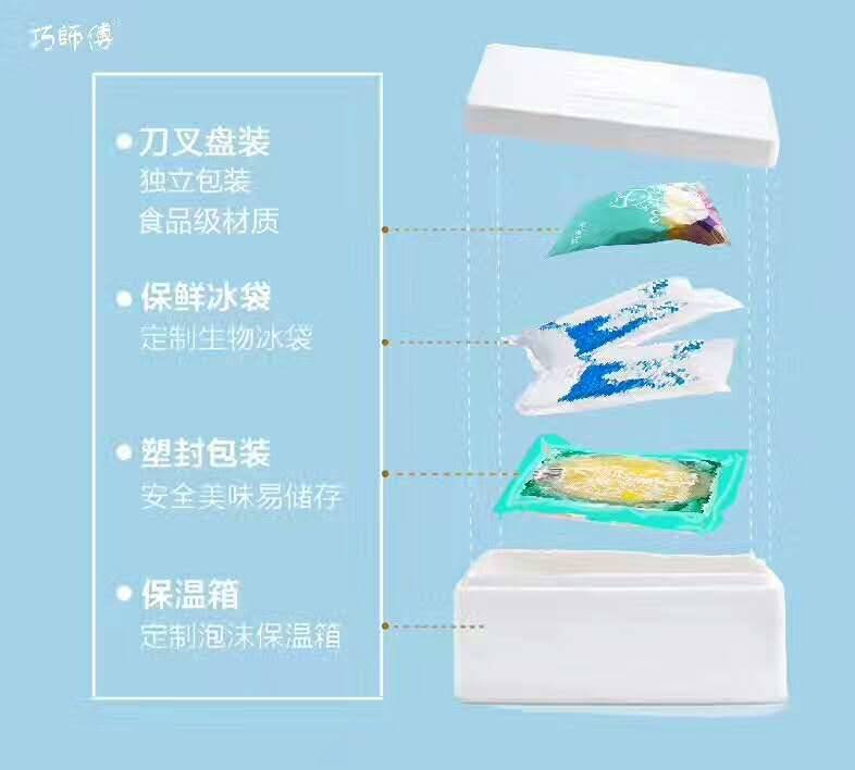 霸气泡沫箱、定制冰袋、配套餐具、刀叉盘餐巾纸一应俱全。