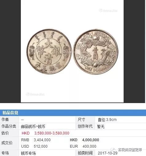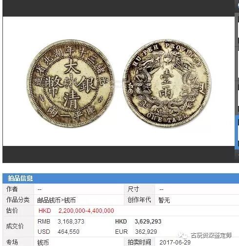 再到2006年春季北京拍卖会上,一枚1898年“湖南省造光绪元宝库平七钱二分”银元试铸样币,竟破天荒地创出了236.5万元的天价;在2008年5月下旬北京春拍“钱币、邮品”专场中,一枚1867年“上海一两无射线版”银币样币,因品相完美无瑕,成交价高达134.4万元,二枚一组的“民国二十一年孙中山像金本位”半圆、壹毫银币样币也分别以人民币168万元和123.2万元的高价成交。