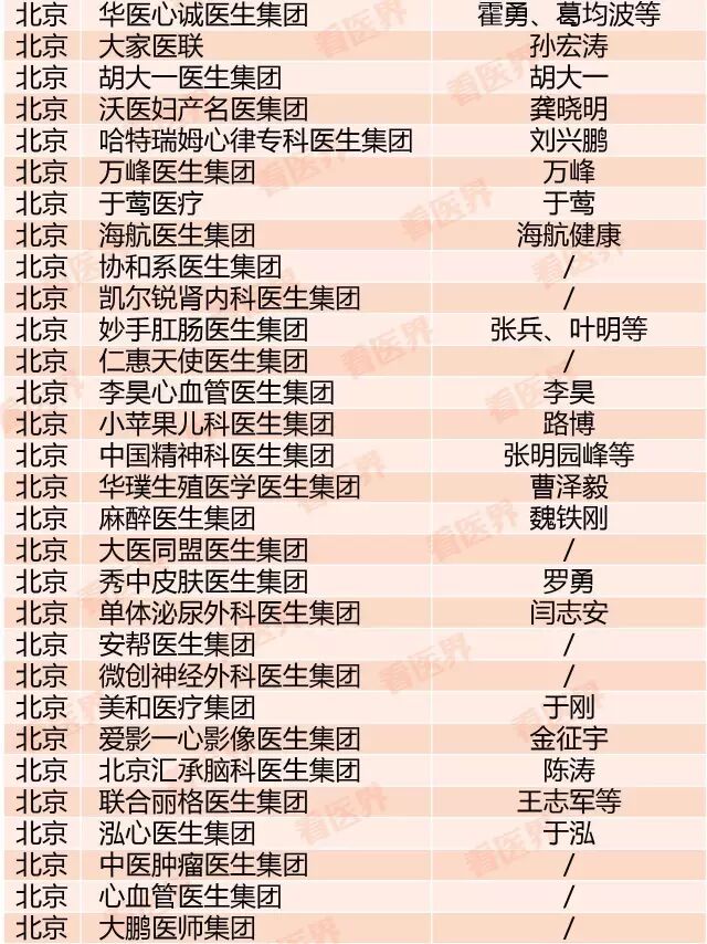 据统计,榜上有名的医生集团的数量已经到达160家,虽然已经是最全的一次名单统计,但要知道,这可不是中国医生集团的全部。有不少医生集团成立了但因并未做大量宣传因此不为业界所知,有的刚刚成立还没对外宣布;更是有一大批医生集团正在筹建中。