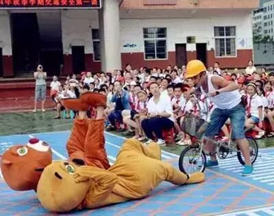 开学第一天,广西防城港真人版“光头强”黄彬和当地“最美女交警”王红霞一起,为该市某小学的学生上了一堂别开生面的“开学第一课”。
