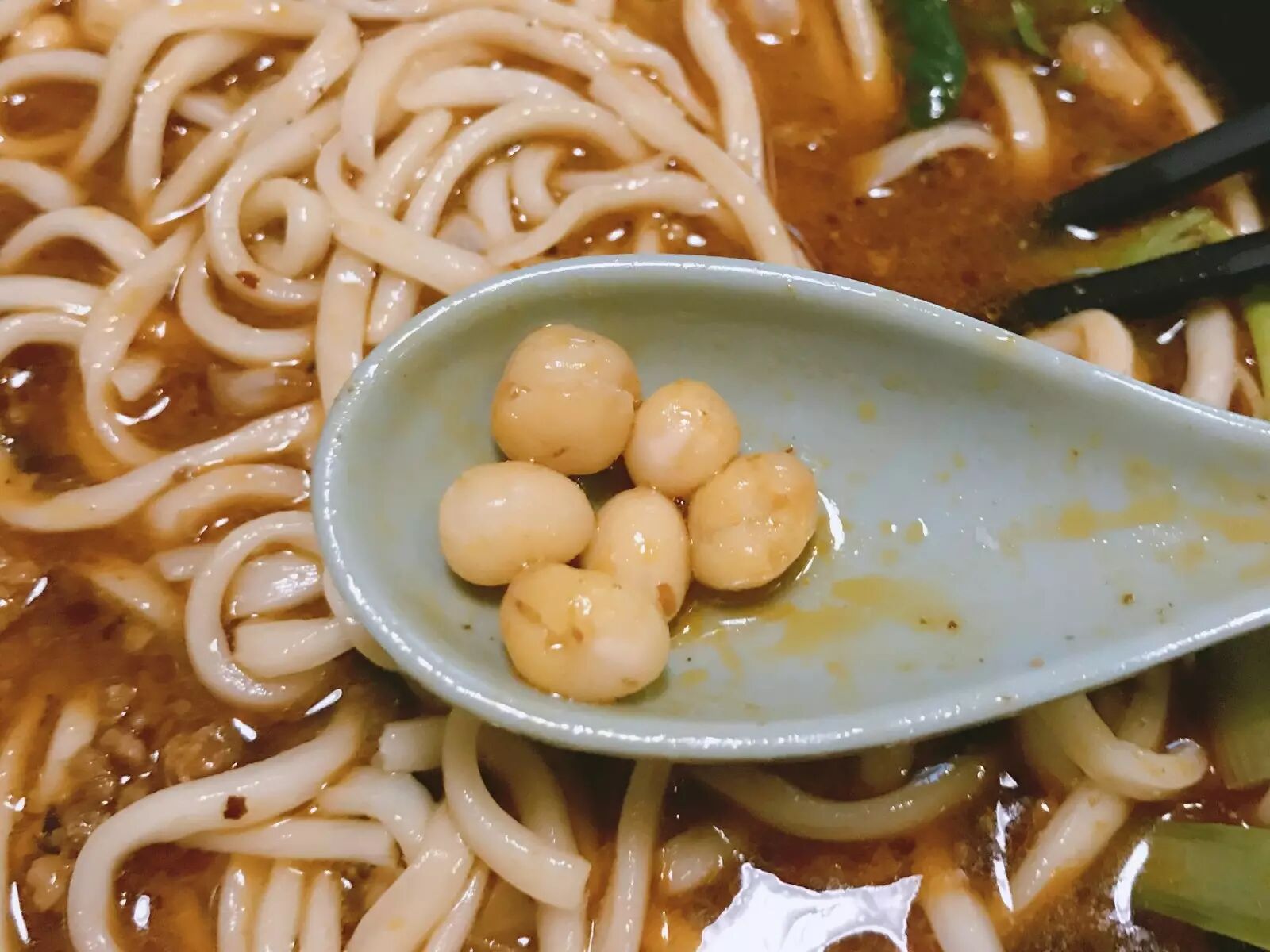 店主夫妇都是重庆人,非常和善。尤其是瘦瘦的老板,全程面带微笑。老板娘舀肉酱的时候,通常会多兜一点油淋到面上,所以整碗面因为稀烂的豌豆和肉酱加持,像黏糊糊的滤镜,不清不爽,跟浓雾笼罩的山城一样。