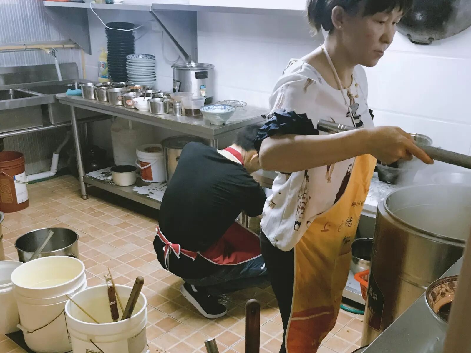 先看了下后厨,算是开放式厨房,杂物很多,但整体干净整洁,让人很放心。