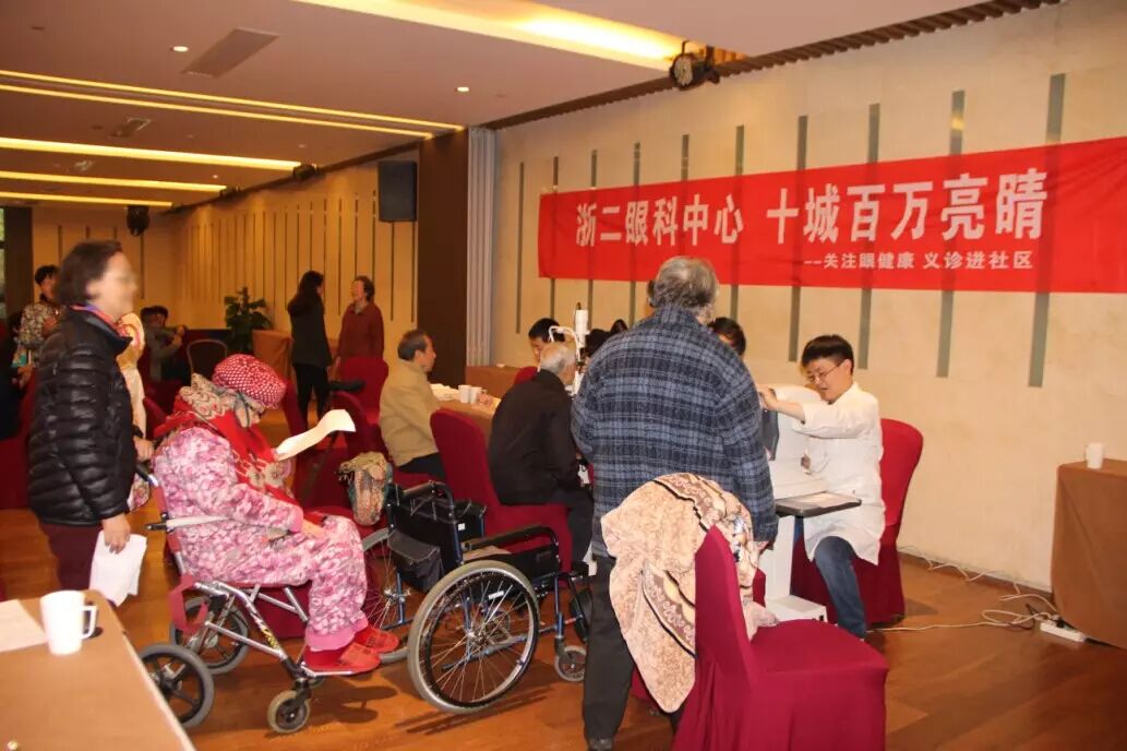 通过宣梦铮阿姨积极努力的沟通,12月11日邀请了浙二医院眼科团队为随园嘉树业主举办了“二眼科中心,十城百万亮睛”义诊活动。浙二医院团队带来了大量检测设备,现场医生均为博士级别以上职称,为业主进行视力测试,电脑验光,眼压测试,眼科检测和就诊建议。共有109位业主参加检查,本次筛查中有8位业主检测出需要做激光手术,部分业主检测出有轻微的眼科病。浙二眼科团队还为参加检查的业主开出了门诊就医绿色通道。