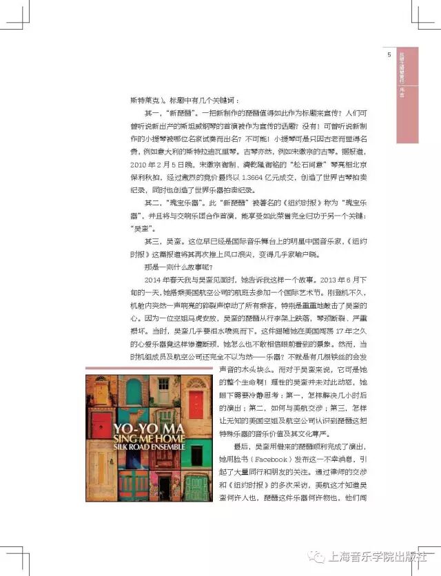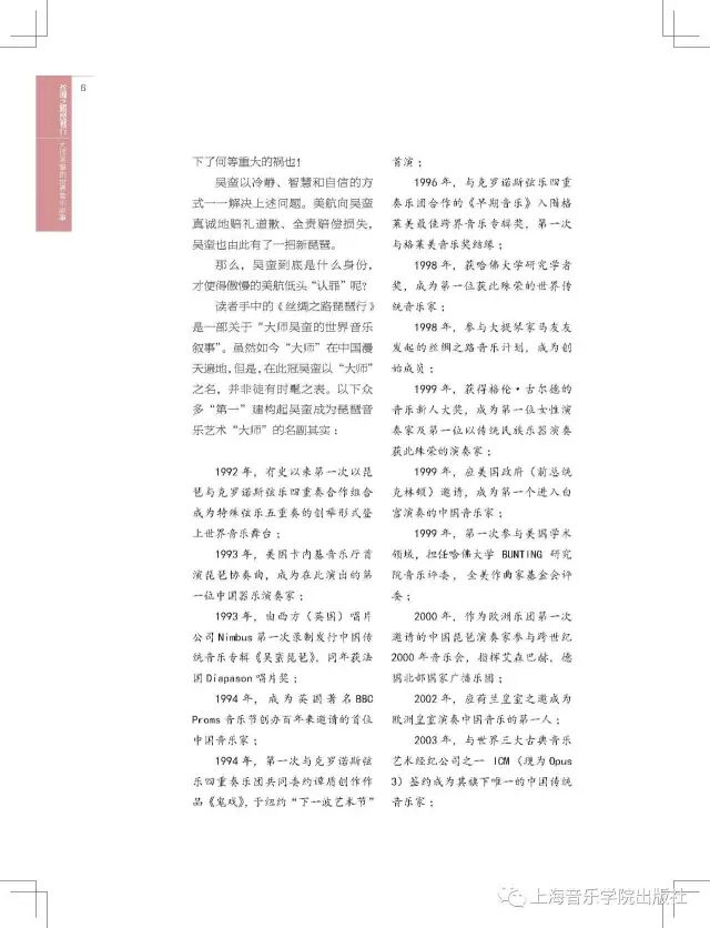 《丝绸之路琵琶行》这本书初时上海音乐学院出版社向我提出合作意向,希望我的经历能带给音乐学生和大众读者鼓励,我是既高兴又紧张。27年了!终于有机会把我从一个不谙英语的年轻传统乐器演奏毕业生,到成为今天活跃于国际音乐舞台音乐家的经历故事与国内读者分享,特别与有创业志向的年轻人交流。
