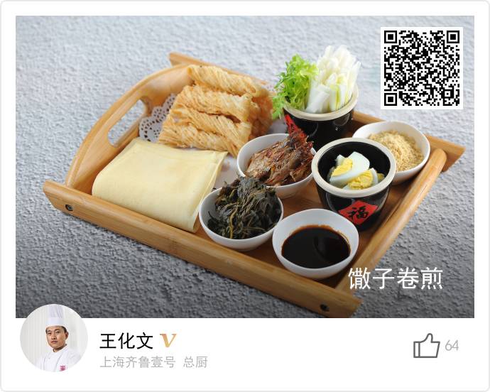 章丘大葱的葱白切段,配以山东特色煎饼和香椿芽,滋味鲜香。