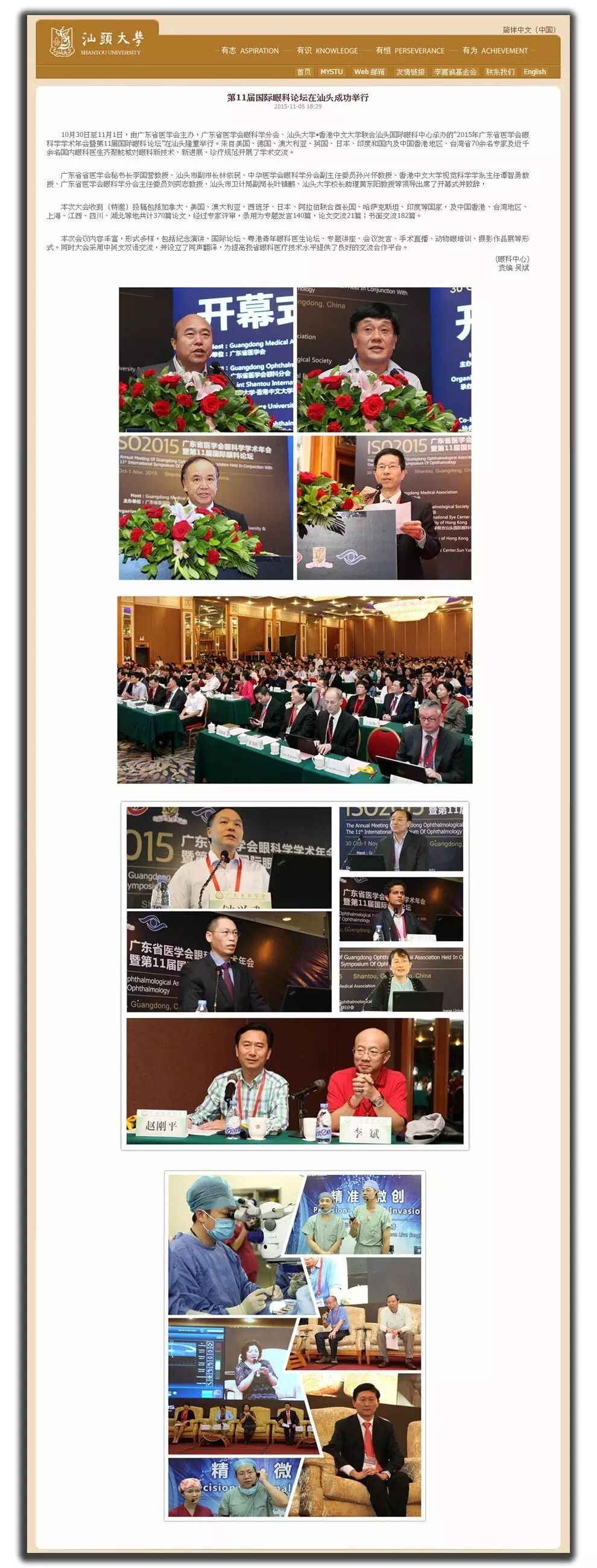 2015-2016年度汕头大学“好新闻”评选结果近日揭晓,由汕头大学·香港中文大学联合汕头国际眼科中心、汕头大学医学院组织宣传统战部选送的作品《第11届国际眼科论坛在汕头成功举行》荣获“好新闻”图片类一等奖!