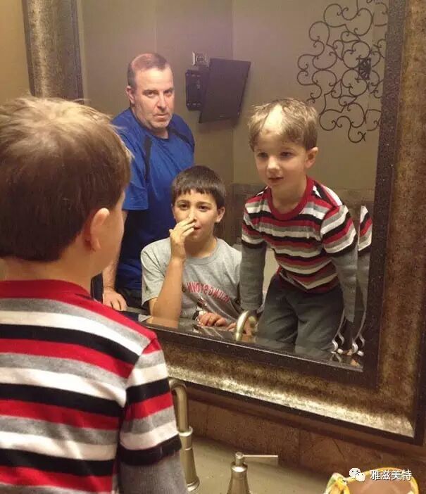 他用老爹的剃须刀想剃个鸡冠头,没想到一照镜子是酱紫的。
