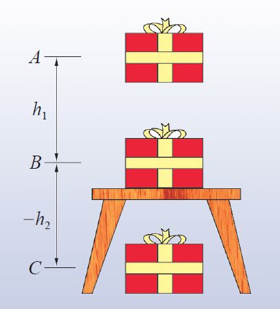 例如:如果我们选定桌面为零势能参考平面,当质量为m的物体位于该参考平面以上高度为h1的A处时,它的重力势能是EPA=mgh1;当物体放在桌面上时,它的重力势能即为EPB=0;而当物体放在桌面以下h2的地上时,它的重力势能则为EPC=-mgh2。