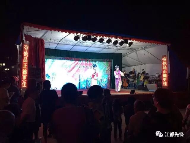 6月14日晚,郭村镇周楼社区组织开展了“两学一做”戏曲下乡暨“党建与你同行 勤政廉政为民”活动,邀请扬剧团结合“两学一做”、家风家规、勤政廉政等主题排演了多个戏曲节目,用传统戏曲文化拓展延伸基层党建活动形式。通过扬剧的形式,表演了群众喜欢的样板戏《五子传奇》等节目。舞台上,演员们激情的演出,唱念做打、一板一眼、唱腔优美,博得场下阵阵喝彩。