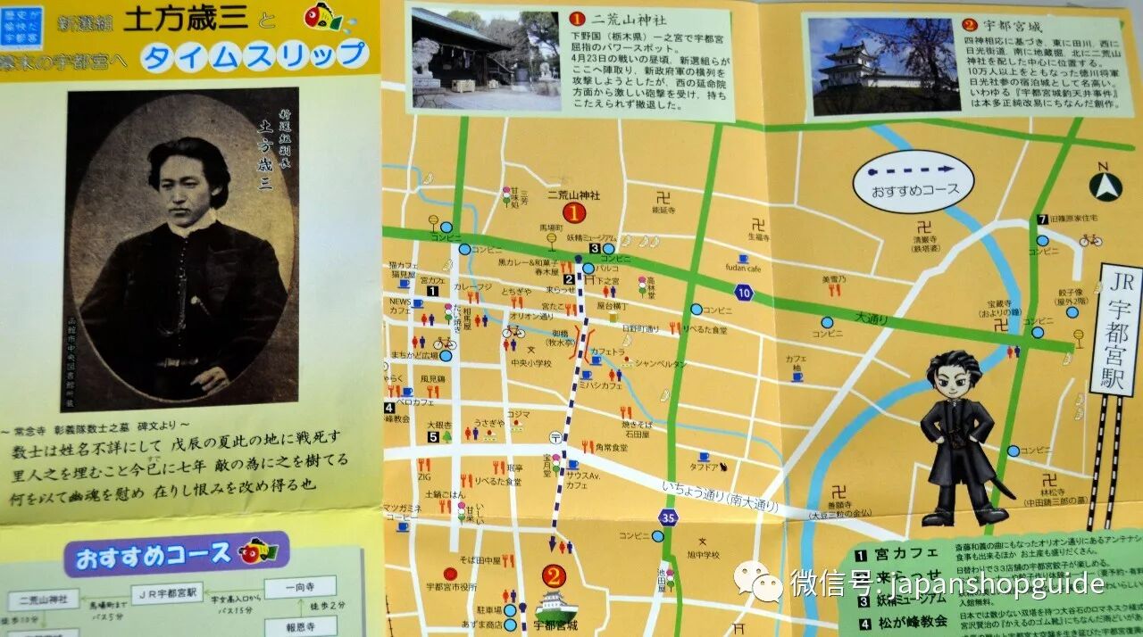 以1868年至1869年在明治新和旧幕府势力间展开的戊辰战争为主题,栃木县宇都宫市的观光地图“穿越回新选组土方岁三与幕末的宇都宫”(日文为:新選組 土方歳三と幕末の宇都宮へタイムスリップ)现已完成。