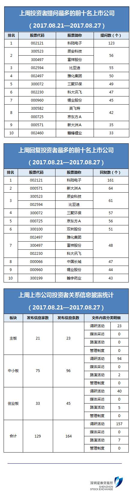 上周,我所互动易收到投资者日常问题共8883条,其中有效问题6661条,上市公司回复6818条(含本周对以往问题的回复);共有129家上市公司发布164条投资者关系活动记录文件。互动易APP目前已正式上线,请查阅公众号,在“互动活动“一栏点击”互动易下载”安装。