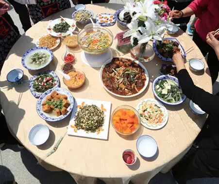 四季花海沟域内的民俗户根据传统工艺和地方特色,推出了白面、玉米面、莜面为主的三色河捞面,辅以茄丁肉丝、西红柿鸡蛋、炸酱、酸菜四样卤,口感顺滑,令人过齿难忘。