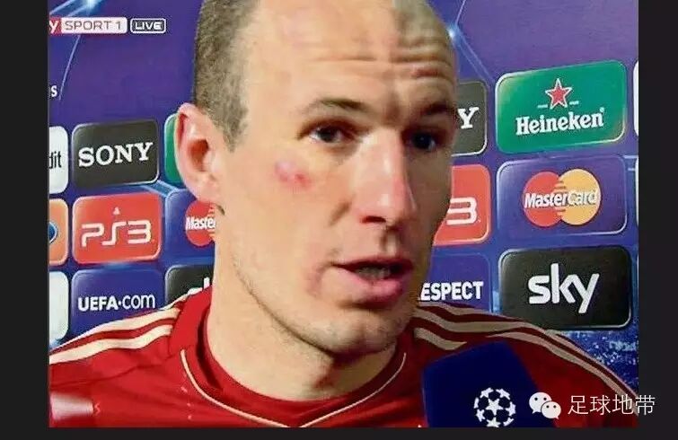 赛后,罗本在接受媒体采访时,便有细心记者发现小飞侠右脸颊附近有一处伤痕。