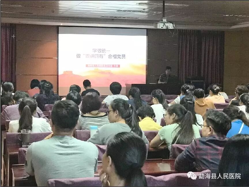 牛涛书记、院长从第一,;第二,“四讲四有”是检验合格党员的重要标准;第三,做一名合格党员做到“知行合一”;第四,从五个方面努力做“四讲四有”合格党员进行了结合医院实际的讲解。通过4个方面讲述如何学做统一,做“四讲四有”合格党员,,更加明确了党员权利和义务及标准,如何做一名合格党员。强化党性修养,、有信念,做有崇高信仰的合格党员;强化纪律建设,讲规矩、有纪律,做有铁一般纪律的合格党员;加强人格修养,讲道德、有品行,做有高尚情操的合格党员;强化责任担当,讲奉献、有作为的合格党员。