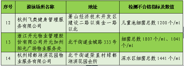 杭州持续高温晴热,游泳池成为人们避暑降温的好去处。杭城的游泳池水质情况如何?截至7月25日,我市各级卫生监督机构对我市目前开放的309家游泳场所进行了全面的卫生监督检查和水质监测。全市共检测游泳池水4206项次。检测指标包括细菌总数、大肠菌群、尿素、浑浊度、游离性余氯等项目。检测结果显示合格4140项,合格率为98.4%。