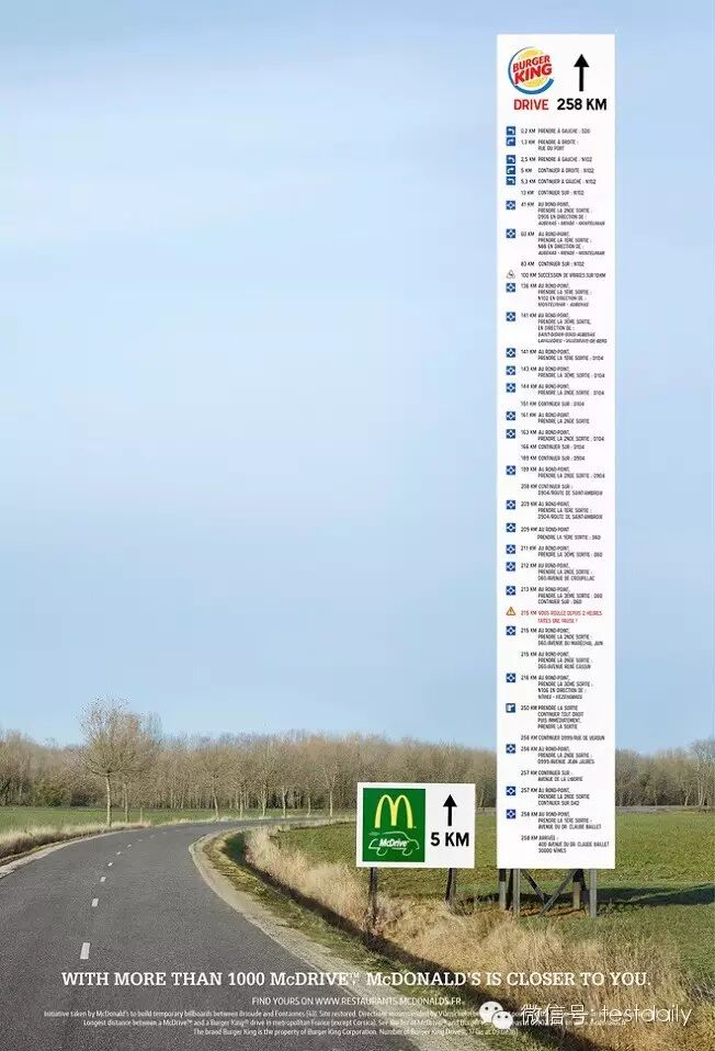 于是乎麦当劳做了一组路牌来嘲讽门店稀少的汉堡王