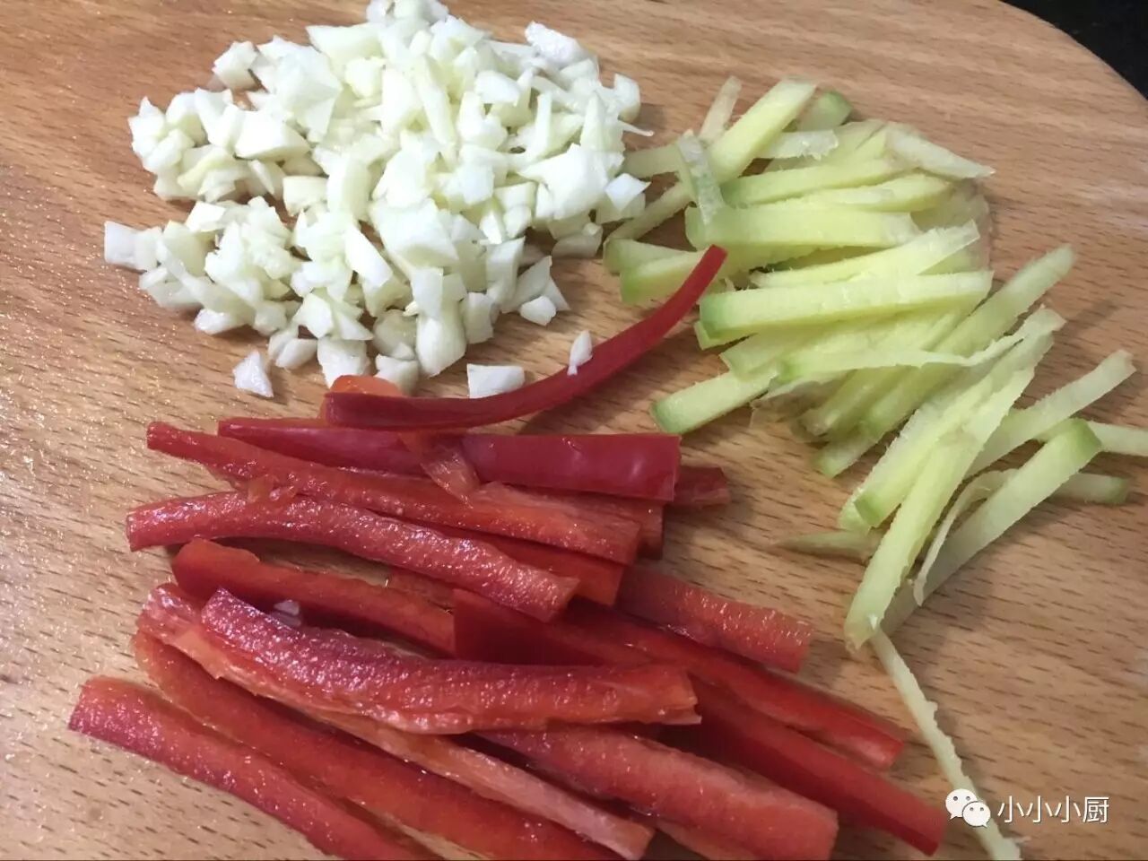 红椒、姜、蒜、盐、糖、味极鲜酱油、料酒、食用油、生粉