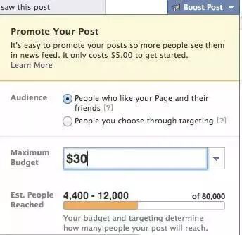 Facebook的一项最新的广告功能“推广帖文“能帮你获取一些额外的状态更新曝光度,尤其当你特别希望你的粉丝或他们的朋友们注意到的时候。而这一切只需要根据你的需要设立广告预算,除此之外并不需要其它的努力。