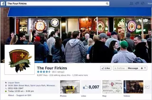 老话说得好,第一印象绝无第二次机会,要吸引人们的注意,必须使用一张超杀的封面图片。Cape Kaleidoscopes in Mashpee, MA只是通过Facebook专页封面图获得成功的其中一个例子: 一张明亮的店铺室内图片。Four Firkins in the Twin Cities是另一个例子, 它的封面图是一群在店外热烈等待的顾客。