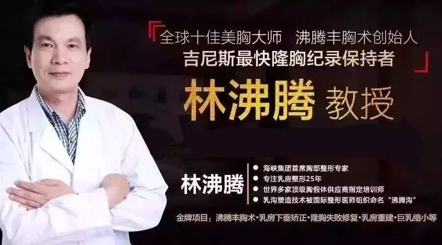 林沸腾教授专攻整形美容20余年,中国25000例安全整形纪录保持者,以其名字命名的“沸腾丰胸术”切口小、出血量极少;术后患者形态饱满、挺拔、自然,乳沟集中效果突出,曲线自然呈现,性感迷人。