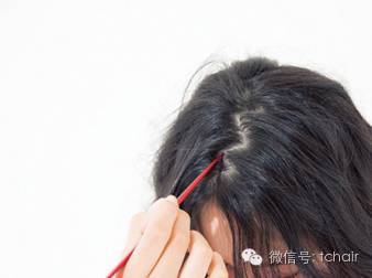 Step1 :首先,先将头发梳好,用分缝梳,将头发的发缝分成波浪形发缝,显得自然