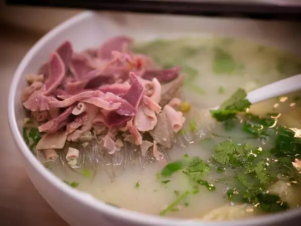 因此我不推荐一些并不好吃,纯粹是因为便宜或装修奇特而造就的性价比而名声在外的店铺,比如因为便宜过头门庭若市的连锁餐厅,比如各种女仆、猫咪主题的店,或者说营造江湖气息的酒楼,以及金碧辉煌、奢华无比的会所。也不推荐那些好吃的外地菜系,比如粤式早茶、铜锅炭火的火锅、日本舞美大师来南京也要吃的日本料理、德国人开、中国大妈经营的面包房,西班牙人开的西班牙餐厅等等,对于长期生活在南京的人而言很有用处,但是一回到当地,这些餐馆难免要露怯。南京的小吃挺多,但是不成菜系,仅有的一些小吃、菜馆也难以成为一块广为人知的招牌,很大的原因在于绿柳居这样的馆子的水准不复当年,诸如奇芳阁、永和园这样的老字号早已江河日下,菜品质量难以保证甚至店大欺客,设置诸如最低消费,只能骗一骗不认识它家招牌的外地游客。而晚晴楼、金陵春这样的酒楼虽然菜品质量差强人意,还有专人讲解小吃历史,但价格死贵,可谓装逼成性,希望大众远离这些,就不予推荐了。推荐的餐厅一律给出地址,如果有分店,那么开头只写总店的地址,分店地址在文后提及,有些餐馆值得一提,但相比别家不值得推荐,就只提其名,不过多推荐了。许多做过功课的人来到南京会直接奔着韩复兴的盐水鸭去,虽然很多外地人并不知道韩复兴是什么,也不知道盐水鸭是什么。这样的后果是到了大名鼎鼎的韩复兴之后才发现,韩复兴原来是一家只做外卖的店铺。二是许多店家爱吃肥鸭,求一个肥而不腻。但韩复兴选的是偏瘦的鸭子,紧实酥烂。三是味道上,有些不讲究的做盐水鸭会做得很咸,韩复兴的盐水鸭并不很咸,而是突出一股清香。除了盐水鸭,韩复兴的其他东西也都值得一试,吃不下一整只鸭子,斩个鸭腿也是不错的选择。他家的鸭油烧饼也很有名,香脆酥脆之类的话不必多说,鸭油浓郁是最大的特色,不过鸭油的气味缺不是所有人都喜欢的,认为这是鸭子的臊气人的就不必吃了。南京的盐水鸭大致可以简单地分为两档,韩复兴一档,其他盐水鸭另一档。如果硬要在韩复兴和其他盐水鸭之间塞一个第二名,倒不妨把金陵饭店梅苑餐厅的盐水鸭塞进去。但一来梅苑餐厅的盐水鸭太贵了,就吃东西而言性价比太差,二来金陵饭店是所以是金陵饭店,不在于一道盐水鸭,盐水鸭对于金陵饭店和盐水鸭对于韩复兴的意义截然不同,虽然也上过电视,能讲出光怪陆离的历史和工艺,我始终不觉得觥筹交错、指点江山之间,我吃到的盐水鸭能像电视里那么用心。总之这盘鸭子离大众遥远了一些,便不值得推荐。至于真空包装的桂花鸭,我一直以为任何美味进了真空是对于精心选料、烹调技艺的侮辱,这种储存方法既体现不出厨艺的精湛和选料的考究,精湛的厨艺和考究的材料也不屑于委身于礼盒之中,所以如果路途不远就去韩复兴切几只盐水鸭带回去吧,真空礼盒里的盐水鸭只会让你的家人对南京的印象变得糟糕。南京的鸭子铺向来是同时卖红白两味的,即烤鸭和盐水鸭。论皮的酥脆,南京的烤鸭比不了北京烤鸭,论口感的鲜嫩多汁,南京的烤鸭又比不了广式烧味。乍一入口,南京烤鸭的味道并没有太多惊喜,但是其貌不扬的南京烤鸭,在洒上一袋红卤之后,脆皮嫩肉之间布满了酸甜适口的卤子,顿时色、香、味境界全出,便是入口生香,欲罢不能。这家店明明叫章云板鸭,卖得最受欢迎的却是烤鸭,其实盐水鸭也不错,但是有韩复兴在前,就不多推荐了。另一家巴子烤鹅卤菜店,名气大不过章云板鸭,人气却不小。这两家推荐的店在做法上特色并不明显,只是各自在各个环节都比别家出色,便不多描述了。如果你到南京人家里来做客,他也未必会给你推荐这家的鸭子,甚至有的人会毫不犹豫地认为——自己家附近的就是最好吃的。值得一提的是,曾经在南阴阳营有着两家店铺,一家月星餐厅专卖酸菜鱼,鱼片鲜嫩,口味却咸辣非常,而且其他菜一概没有,顶多拍个黄瓜,另一家巴子烤鹅,烤鸭做的很好,烤鸭中放很多的干果,吃着入口生香,这两家虽然没有什么关系,但东西都做得很好吃,能吸引远近食客,又在同一条街上,去吃月星酸菜鱼的几乎都会人手一份,捧一盒烤鸭进来,倒也相得益彰,每每看见这一景象,颇有管鲍之交、秦晋之好。但后来月星餐厅搬走了,虽然各自的生意依然不错,但这样美好的景象却再也看不见了,有些食客为之惋惜, 不知老板们有没有惋惜的想法。不过不知道为什么,几乎每次吃饭的时候,烤鸭和盐水鸭一同摆出来的时候,都是夹烤鸭吃的人多,大概是做法使然,相比盐水鸭,烤鸭更容易做得好吃吧。南京人嗜鸭,擅长吃鸭,不论是烤鸭、板鸭、盐水鸭,都做得香飘十里,美名远播。鸭脖、鸭爪也不放过,连美女们也不顾手脏,啃得美滋滋的,鸭子翅膀做成鸭四件,小孩子也抱着啃得满脸卤子——应该说除了鸭毛只能做成羽绒服,鸭子身上的每一块都能在南京变成美食。但如果挑选一种和南京人最为休戚相关的食物,这种食物却不采用鸭子肉,而是用那些鸭子肚子里藏着的东西,做出来的鸭血粉丝汤。但南京遍地都是鸭血粉丝汤,但想吃一碗理想的鸭血粉丝汤,它的里面内容首先要包罗万象——鸭血细腻而嫩滑,鸭肫肉质紧密,滋味悠长,鸭肠富有韧性,紧韧耐嚼,鸭肝质细嫩,味鲜美,有鹅肝的影子。单单是这一条,许多小摊就做不到,即便有这么全,也舍不得物料放多一块。而这些七七八八的东西,好