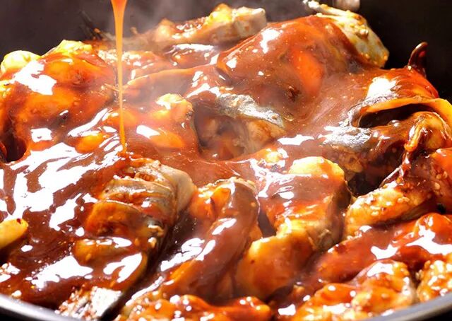 3、 调好三汁:甜面酱、番茄酱、耗油比例1:1:1,加少许水,两勺白糖。