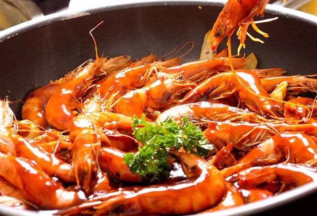 食材:大虾、鱿鱼、鸡翅、金针菇、芹菜、青椒、洋葱、土豆、甜面酱、番茄酱、耗油、葱、蒜、黄油