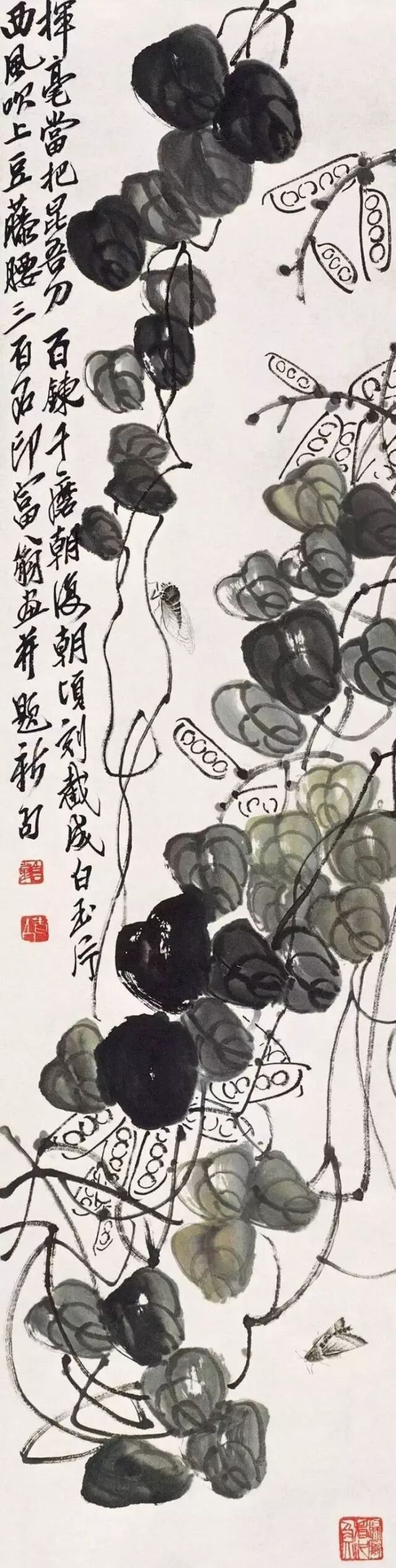 齐白石笔下的蝉,把写意与工笔画有机结合在一起,草虫精妙,惟妙惟肖,栩栩如生,令人叹为观止。