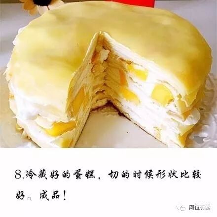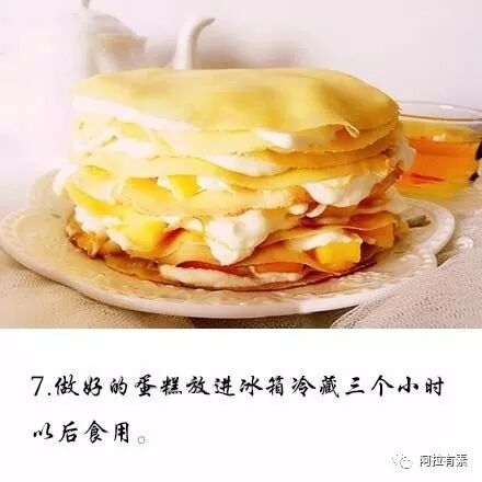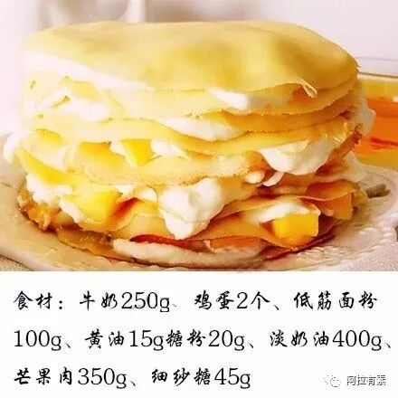 【芒果千层蛋糕】一个平底锅就能做出法式甜点中的经典款式千层蛋糕,按照这个方法也可做榴莲味、草莓味的~