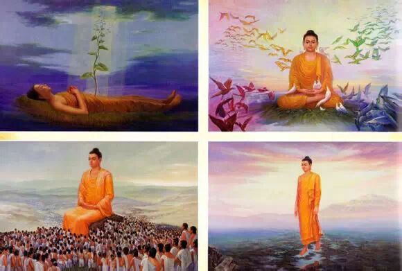 菩萨成道之前五大预示梦之:腹生蔓藤、诸鸟化白、众蛆(象征众生)环绕、涉粪山不染