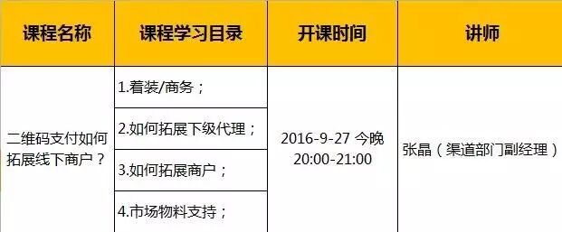 【微创业公开课】第4讲-二维码支付如何拓展线下商户,今晚8点准时开讲,记得把手机闹钟调到晚上8点哦,以免迟到错过精彩内容!https://ke.qq.com/course/157520#tuin=13faa563https://ke.qq.com/course/157520#tuin=13faa5631.使用电脑的童鞋们:长按课程链接-复制到浏览器打开-点击立即报名-点击第一节课程,即可报名成功。