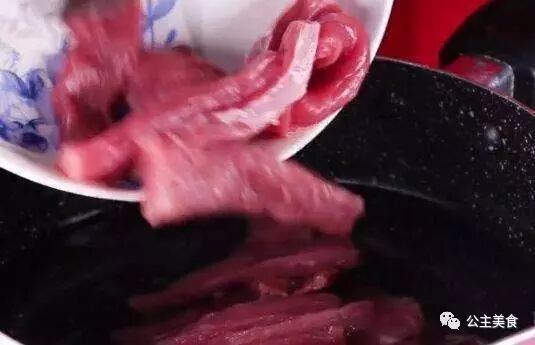 将拌好配料的牛肉跟着配料一起倒入电放锅里面。