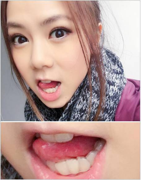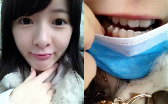 她在微博晒出一组自己戴上隐形牙套的照片,戴上牙套牙齿轻微有点反光呢